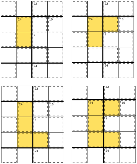 (For example the 24 cage which starts in C3 must be one of these arrangements in the finished puzzle)