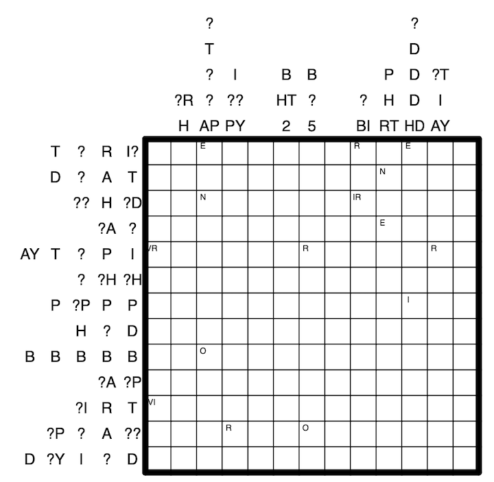 Lösungscode: Row 4, column 9, S for empty cells