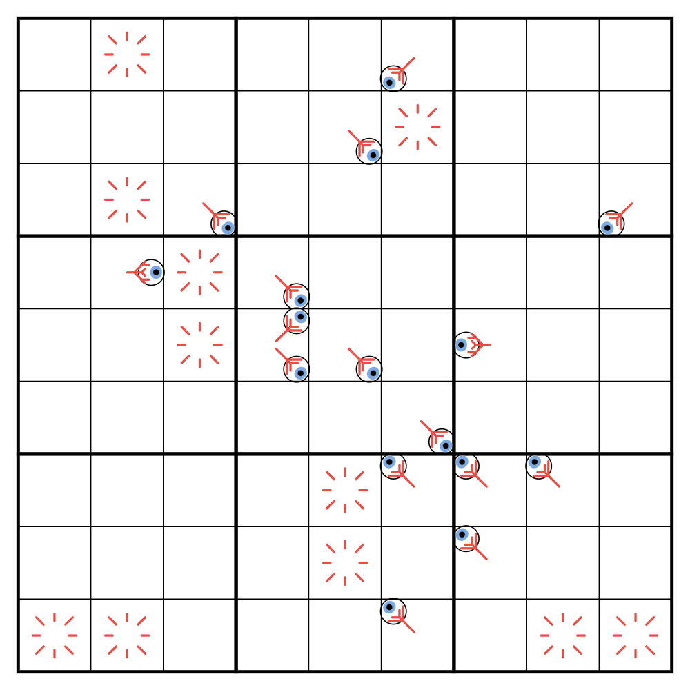 This was fantastic, a brilliant choice of clue that really works well with the somedoku format and feels like a natural extension of it. I also love the playful and creative decision to use eyeballs rather than arrows :D