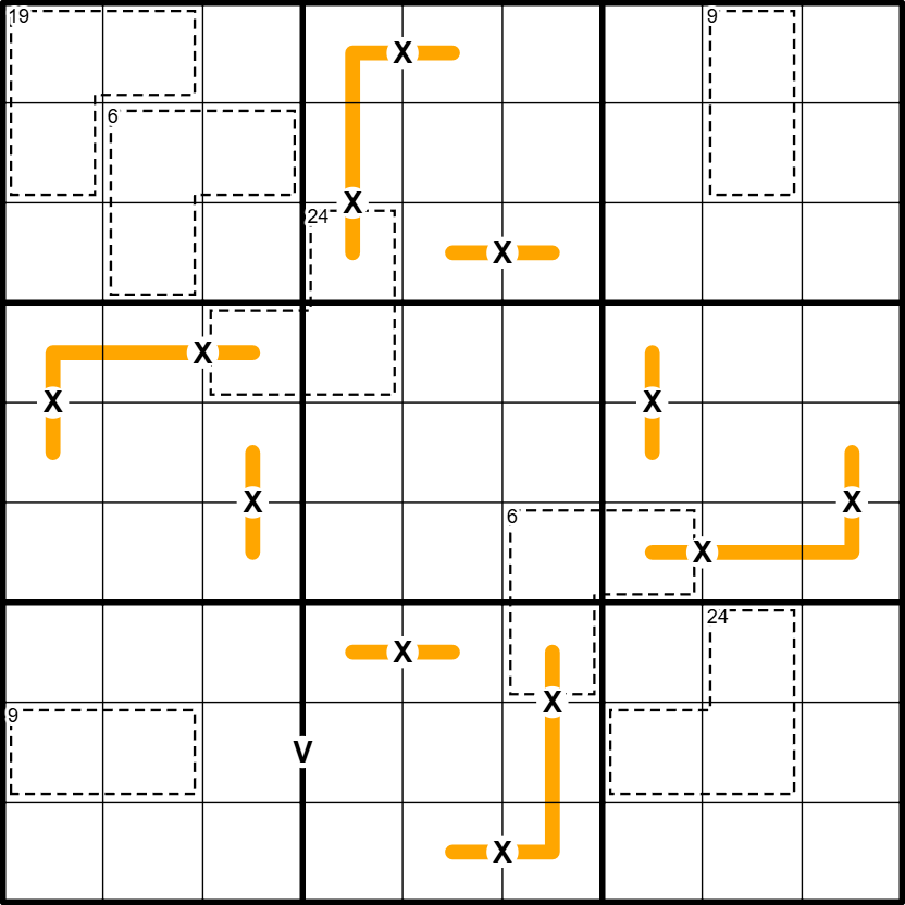 Regular Sudoku, Killer, Dutch Whispers, XV: