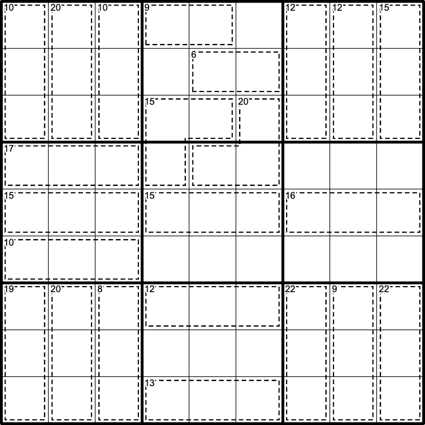 Within a cage, digits must not repeat and their values sum to the small number in the top left corner.