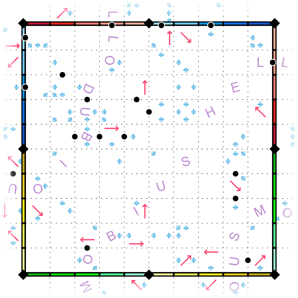 2. Im not sure which cells ar pointed to by an arrow in a direction that leaves the grid in a black diamond. For example, which cells are seen by the blue arrow in R7C9?