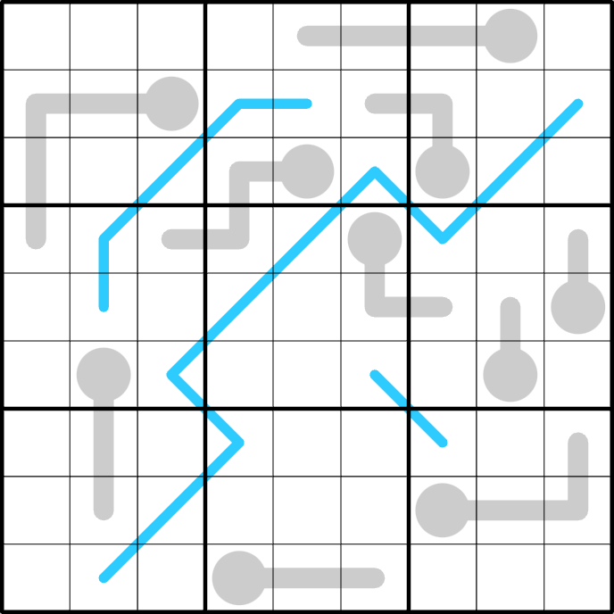Region sum lines: Box borders divide blue lines into segments with equal sums. Different lines may have different segment sums.