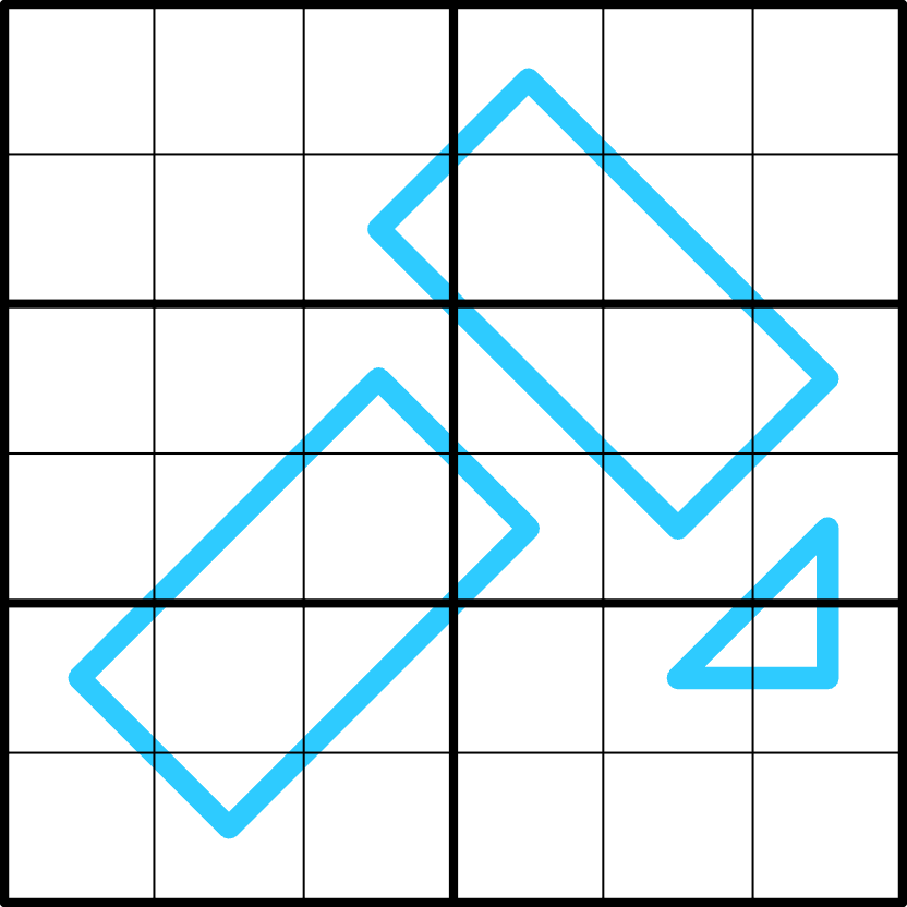 Box borders divide each blue line into segments with the same sum.