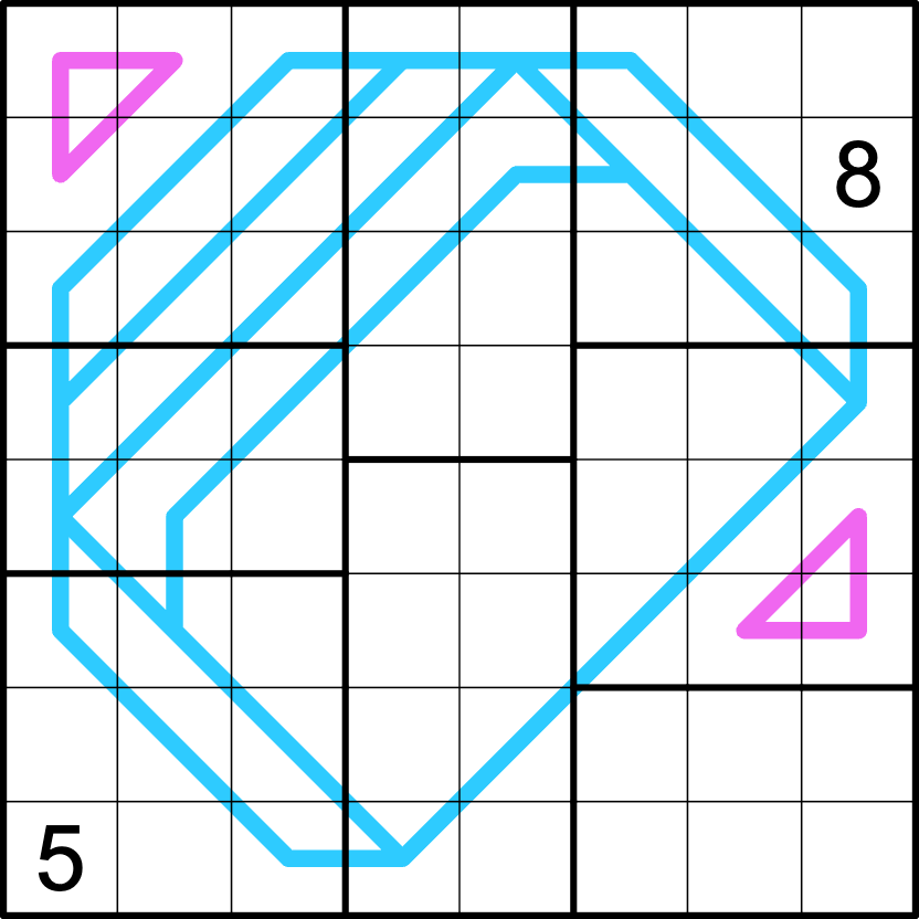 Fill each n-cell region with the digits 1-n so that no digit repeats in a row, column, or region.