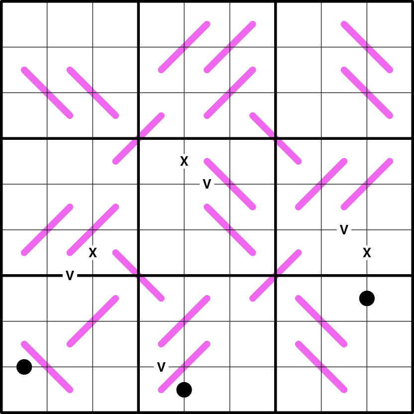 Cells connected by a pink Renban line form a set of consecutive digits, in any order, without repeats.