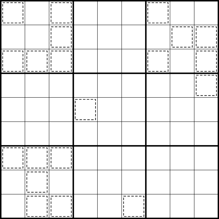K: Let me try to elaborate — I hope this will be helpful. For each cage (say containing the digit N) in the grid, consider all 3×3 squares of nine cells that contain this cage. There are at most nine such squares, but possibly fewer (e.g., R2C3 is included in only six such squares — those with top-left cells in R1C1, R1C2, R1C3, R2C1, R2C2, and R2C3). Among these 3×3 squares, there are exactly N that contain just one occurrence of the digit N (i.e., this digit does not repeat within this 3×3 square outside the considered cage).