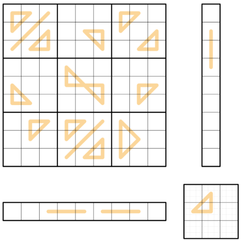 • The notes area outside the grid must filled in with the digits that are missing from the corresponding row/column/box.