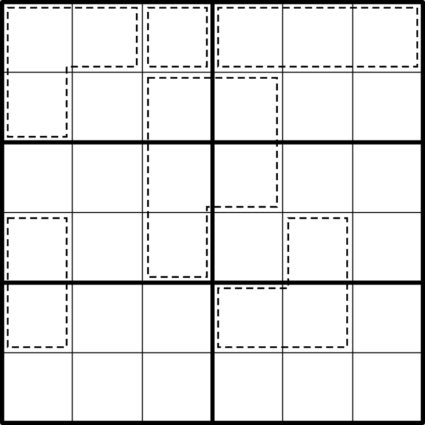 Place the same six digits from 1-9 once in each row, column, and 3x2 region.
