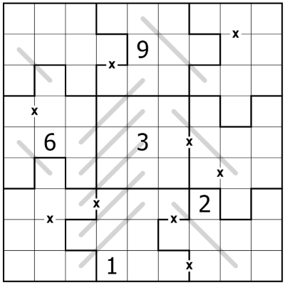Normal irregular sudoku rules apply: every row, column, and outlined region must contain the digits 1 to 9.