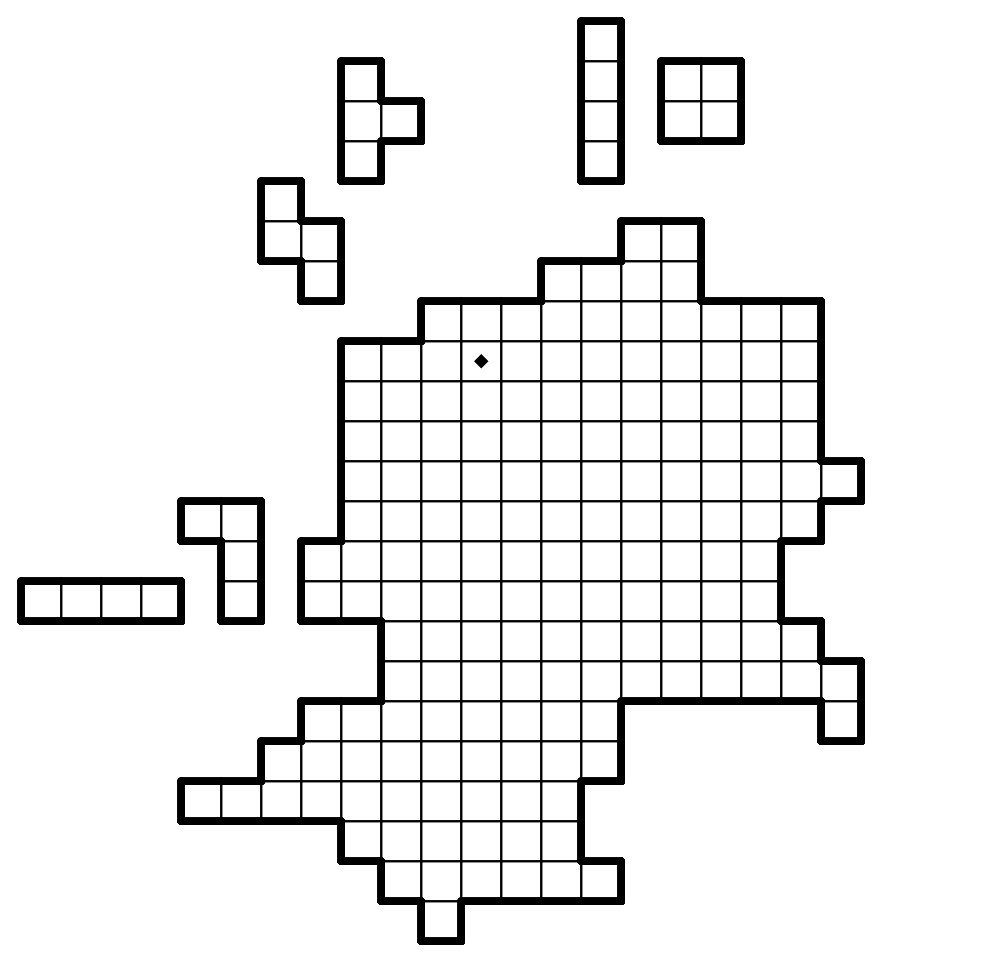 Starting from the diamond, draw a path that moves orthogonally through some cells without branching or intersecting itself.