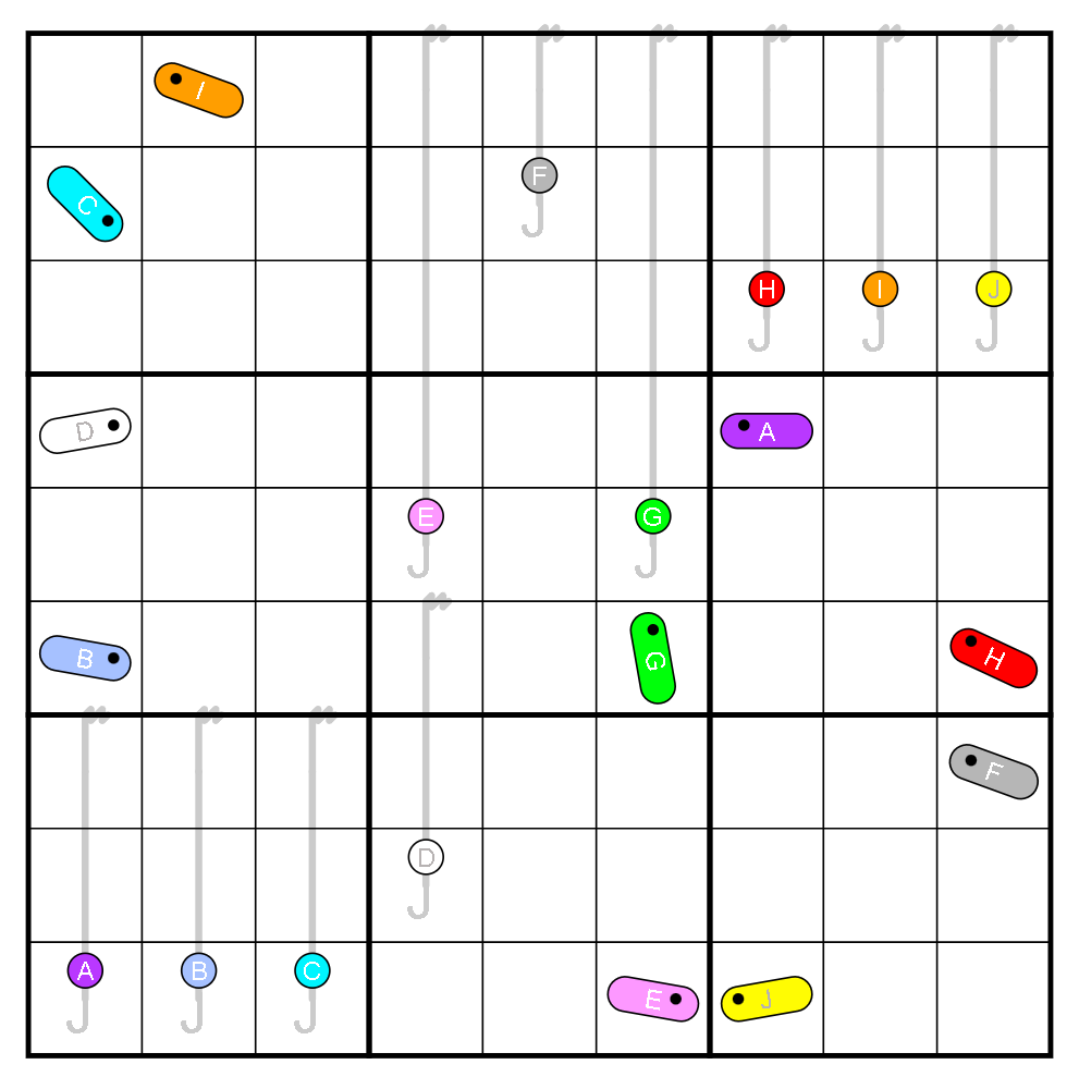 Solution code: The lower right corner of each puzzle