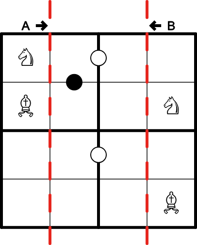 Fold-In: The dashed red lines are folded onto each other so that column 1 and 4 form a secondary grid. In this grid all rules apply, except that regions and rows do not need to have all of the digits (it's a 2x4 grid). Columns 2 and 3 are ignored for this grid.