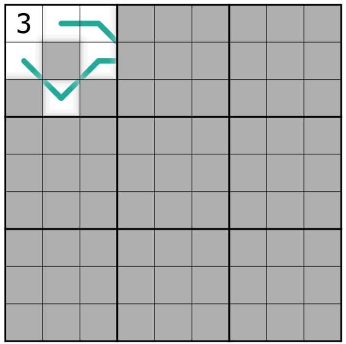 Region sum lines: Region boundaries divide lines into segments. The digits on each segment of a line sum to the same value. Lines DO NOT branch or cross.