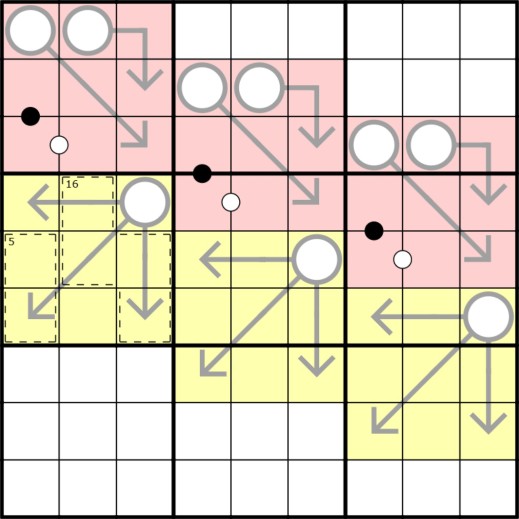 Normal Sudoku rules apply. CLONES (The same positions in clones have the same numbers)- The three pink 3x3 squares are clones. The three yellow 3x3 squares are clones. ARROWS- Numbers on arrows sum to the number in the arrow's circle. KILLER CAGES- Numbers in cages sum to the number in the top left corner of the cage. KROPKI PAIRS- Numbers with a white dot between them are consecutive. Numbers with a black dot between them are in a ratio of 2:1. Not all possible dots are given.