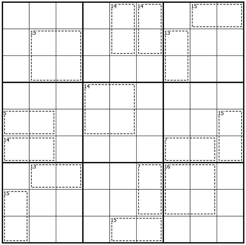 Digits in a cage sum to the small number in the top left corner of the cage.