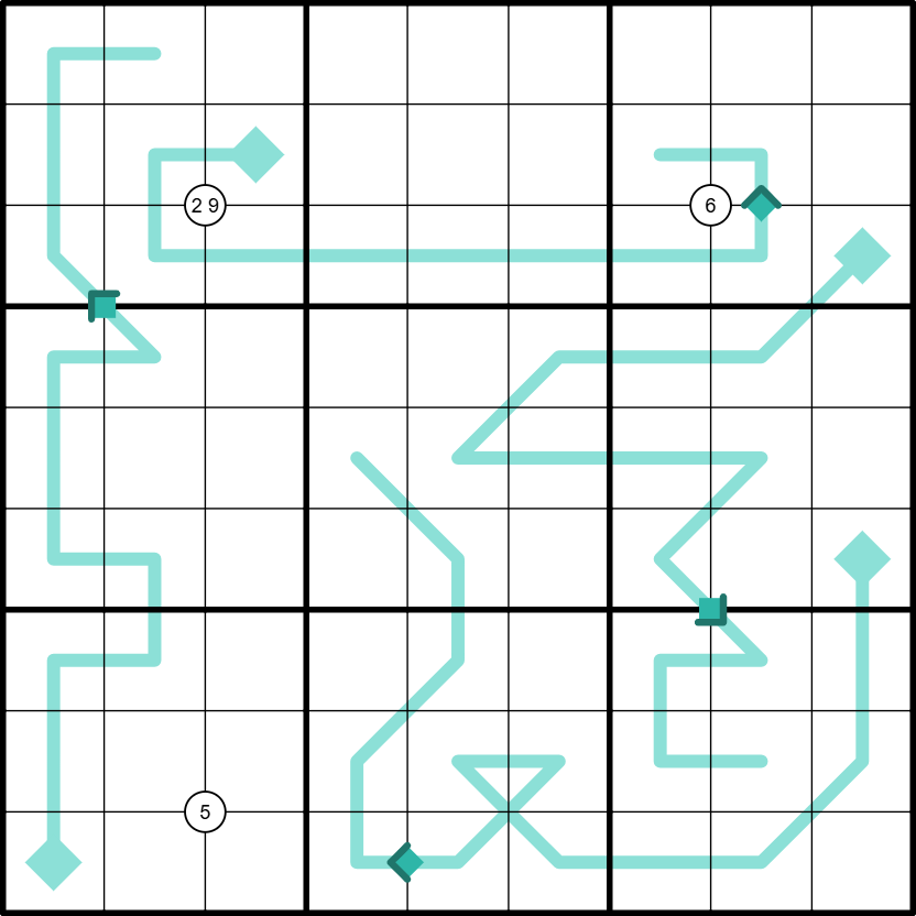 Appendix Lines: These are like an index line, but with repeating positions. Along a line, if a digit D appears in a Pth position, starting at the large diamond, then the digit P must appear in a Dth position along the line.