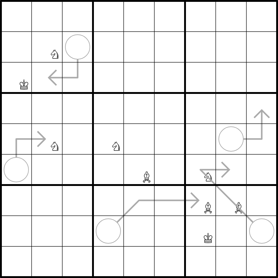 Counting Chess: All cells with chess symbols have to see exactly N cells of value N via their chess move, where N is the digit in the symbol's cell. The cell itself is not counted.