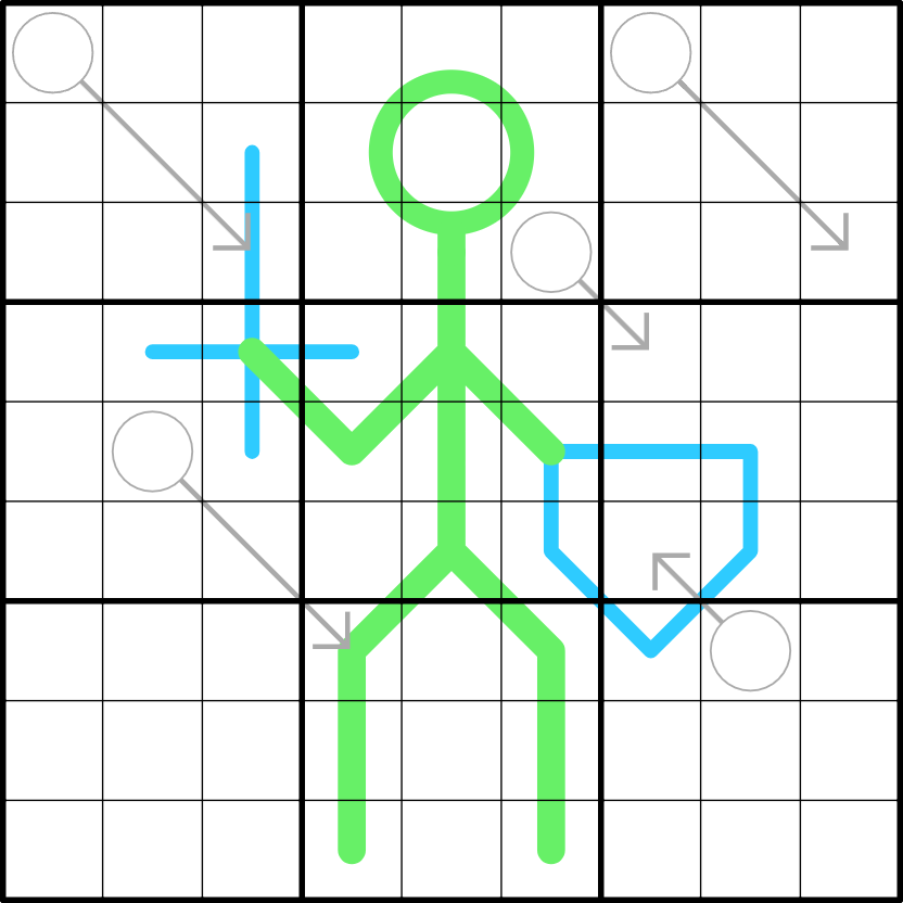 Accessibility: The thicker lines that make up the body and head of the adventurer are German whispers. The sword and shield are Region Sum Lines.