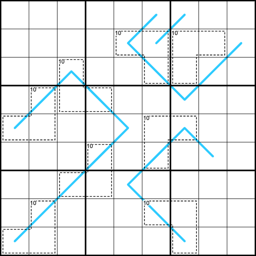Region Sum Lines: The sum of the digits on a blue line within a particular region must be the same for all of the regions the line passes through.
