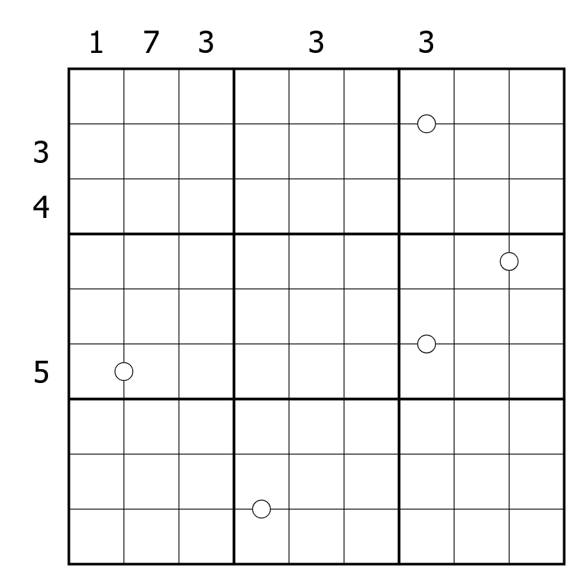 Clues outside the grid count how many shaded cells appear in the row or column.
