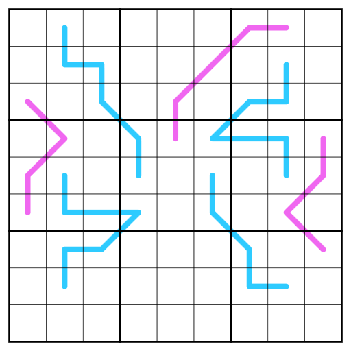 - Region Sum Lines: Box borders divide the blue lines into segments with the same sum. (Different lines may have different sums.)