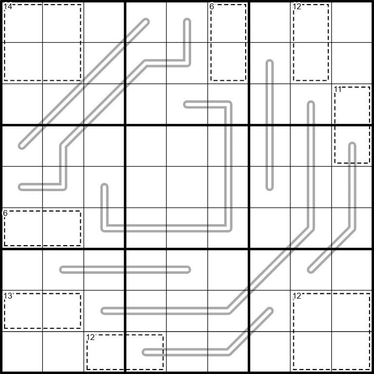 This puzzle was made for Scojo's weekly prompt. The prompt was to use Region Sum Lines and Renban Lines. I once again decided to make an ambiguity puzzle using the two line constraints. I hope you enjoy!