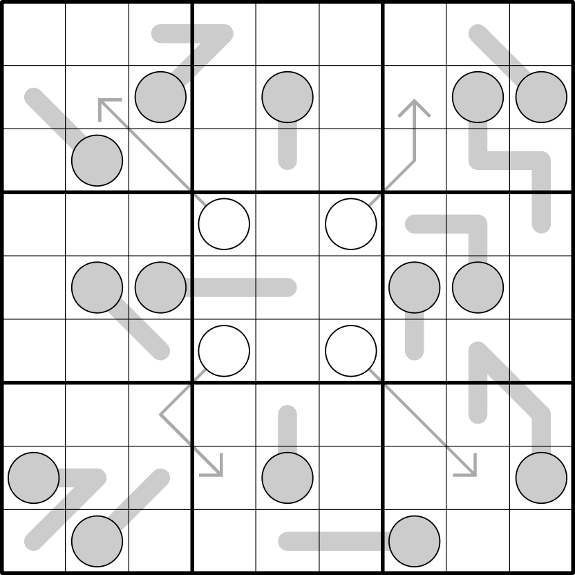 Thermometers' bulbs and arrows' circles act as "counting circles": a digit N within a circle appears in circles N times.