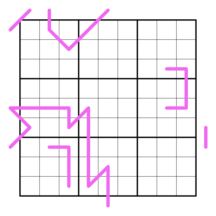 Renban: Values on a purple line form a set of non-repeating consecutive numbers in any order.