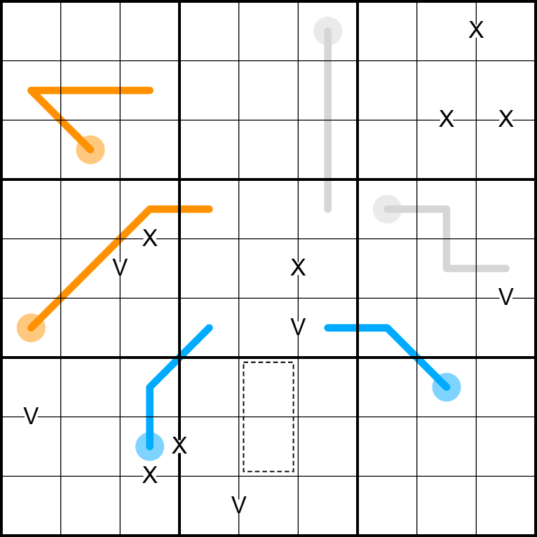 All X's and V's are given.