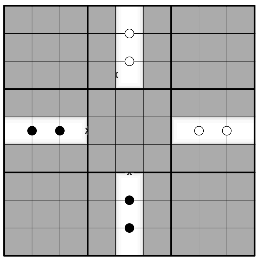 7. White and Black Kropki Dots – Hades’ Realm: - A black dot means one number is double the other. - A white dot means the digits differ by 1. - Not all possible dots are given.