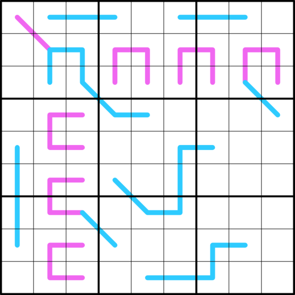 - Region Sum Lines: each blue line is divided by box borders into segments with the same sum of digits along each segment. Different lines may have different sums.