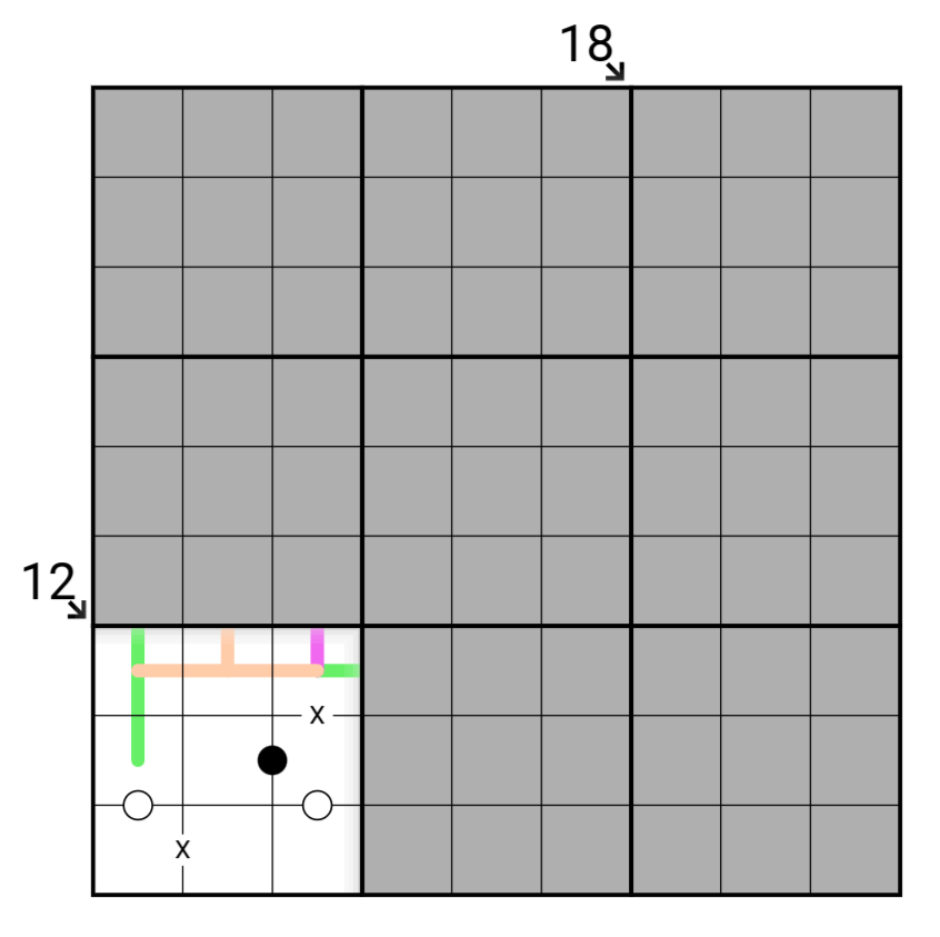 • Digits along a blue line create a sumline where the sum of digits on a line within a particular 3x3 box must be the same for all the boxes the line passes through.
