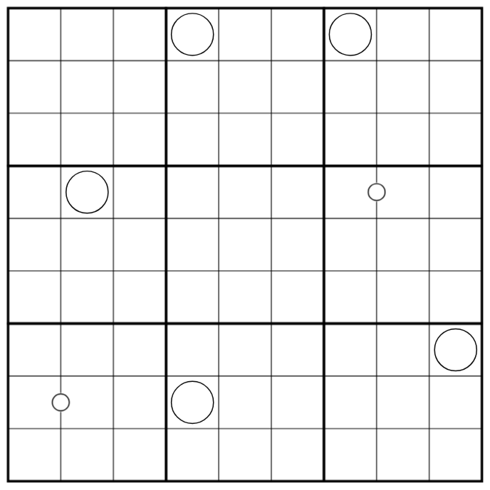 Circles: Circled cells lie on the loop. There is exactly one 9 on the loop, and it is in a circled cell.