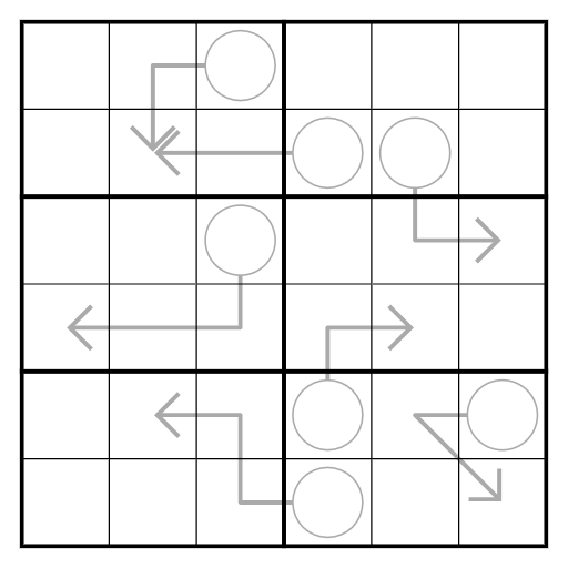 Select 6 digits from 1-9 to place in the grid such that no row, column or 2x3 region has a duplicate digit