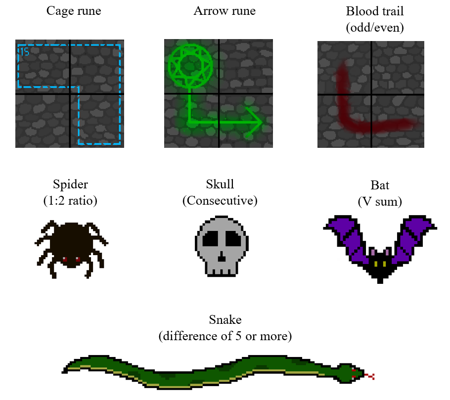 Spiders: If you come across a spider, DO NOT PANIC! Just make sure the digits either side of the spider form a 1:2 ratio. This will appease the spider.