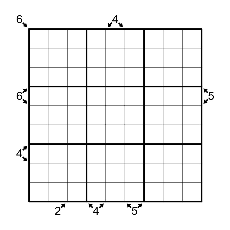 -(clues) The clues outside the grid indicate the number of corners in the given directions combined.