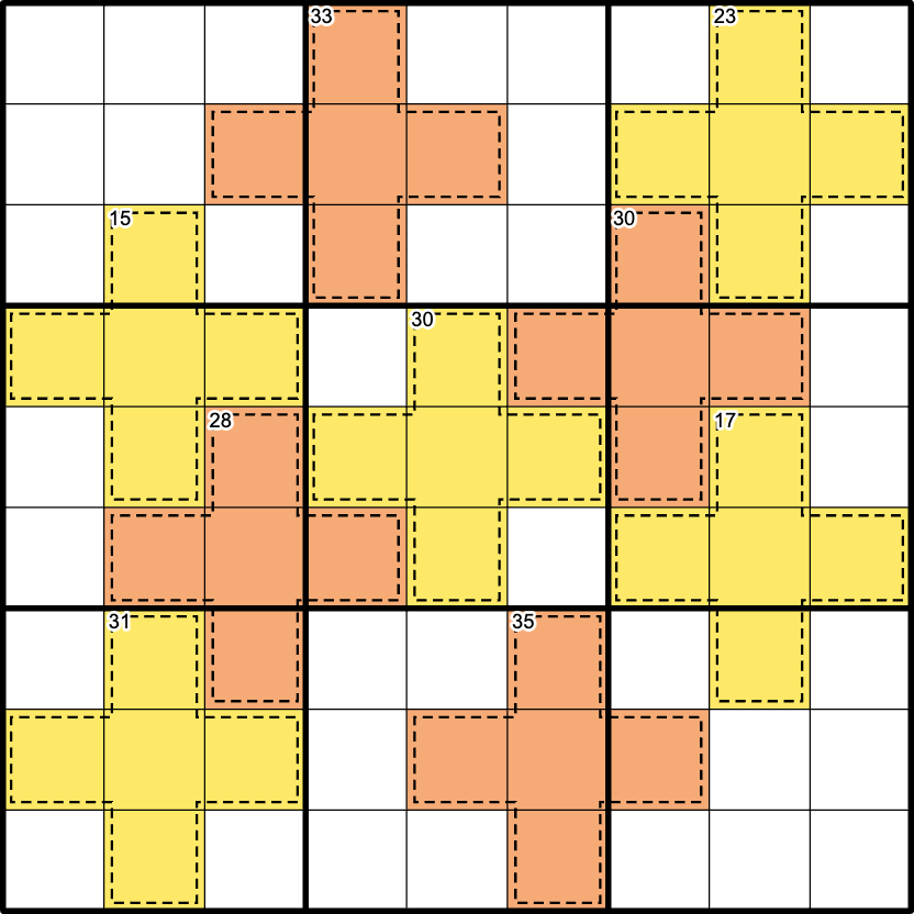 A very effective demonstration of how the anti-knight rule constrains the cells near the cross-shaped killer cages. Thank you.