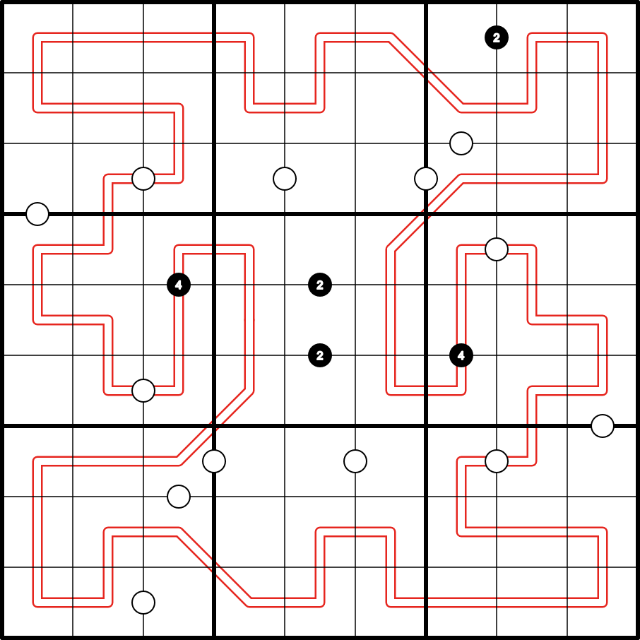 White Kropki: Cells separated by a white dot have values with a difference of one.