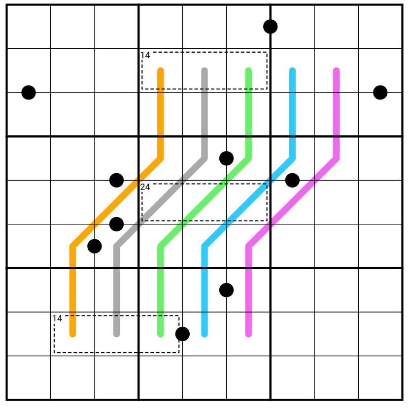 REGION SUM LINE (BLUE): Box borders divide the blue line into segments of the same sum of values.