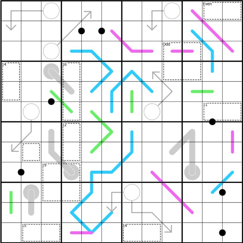 Thank you for many hours of fun! I love puzzles that can be worked on from multiple directions. Big enough to feel like a journey but never too challenging to get discouraged (which tends to happen for me on harder puzzles with few rules...)