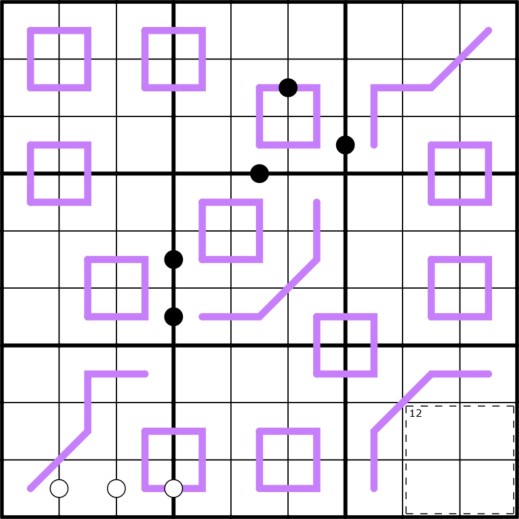 Normal Sudoku rules apply. RENBAN(+)- Numbers on purple lines are each a set of non-repeating, consecutive numbers, IN ORDER. KILLER CAGES- Numbers in cages sum to the number in the top left corner of the cage. KROPKI PAIRS- Numbers with a white dot between them are consecutive. Numbers with a black dot between them are in a ratio of 2:1. Not all possible dots are shown.