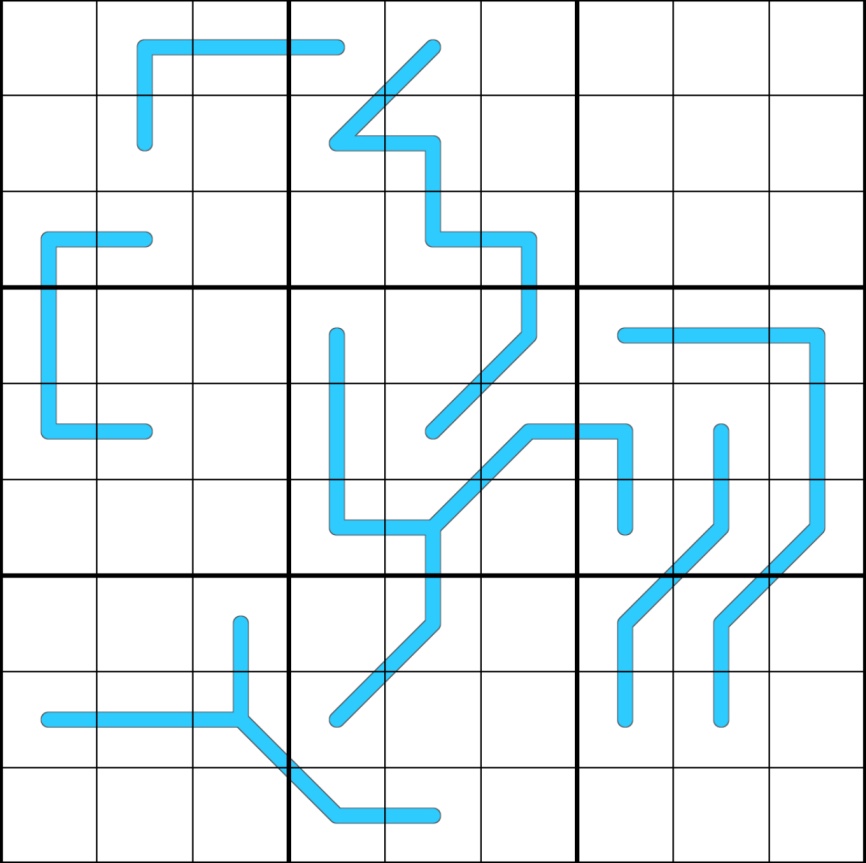 Cells separated by a knight’s move (in chess) cannot contain the same digit.
