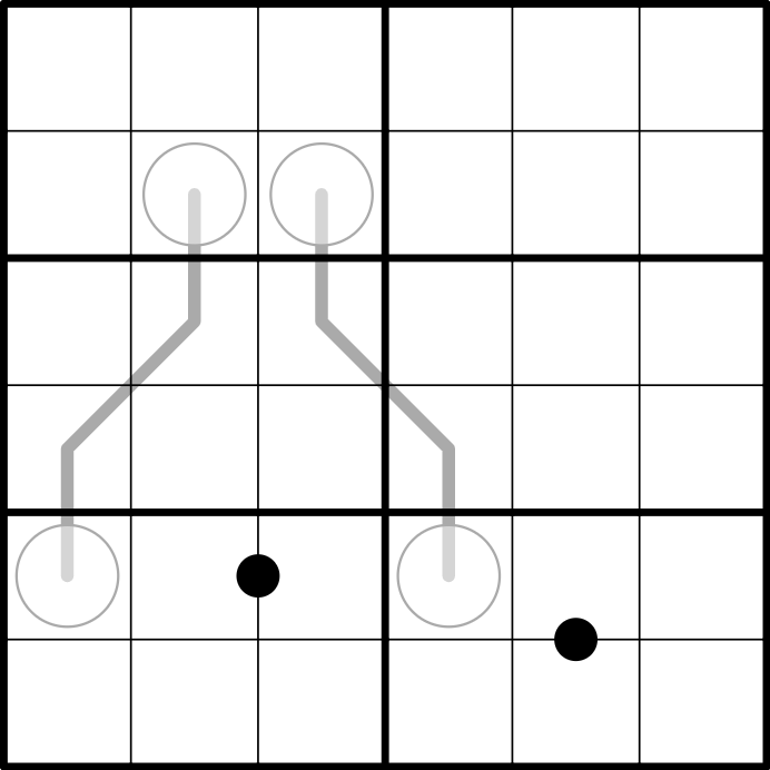 • Digits along a between line must be between the digits on the circled ends of the line.