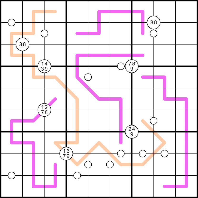 - White Dots: Digits in cells separated by a white dot are consecutive. (Not all dots are given.)
