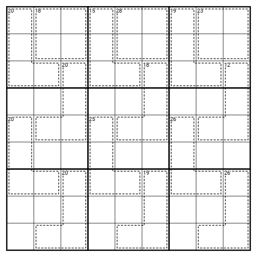 Killer: Digits in a cage do not repeat and sum to the indicated total.