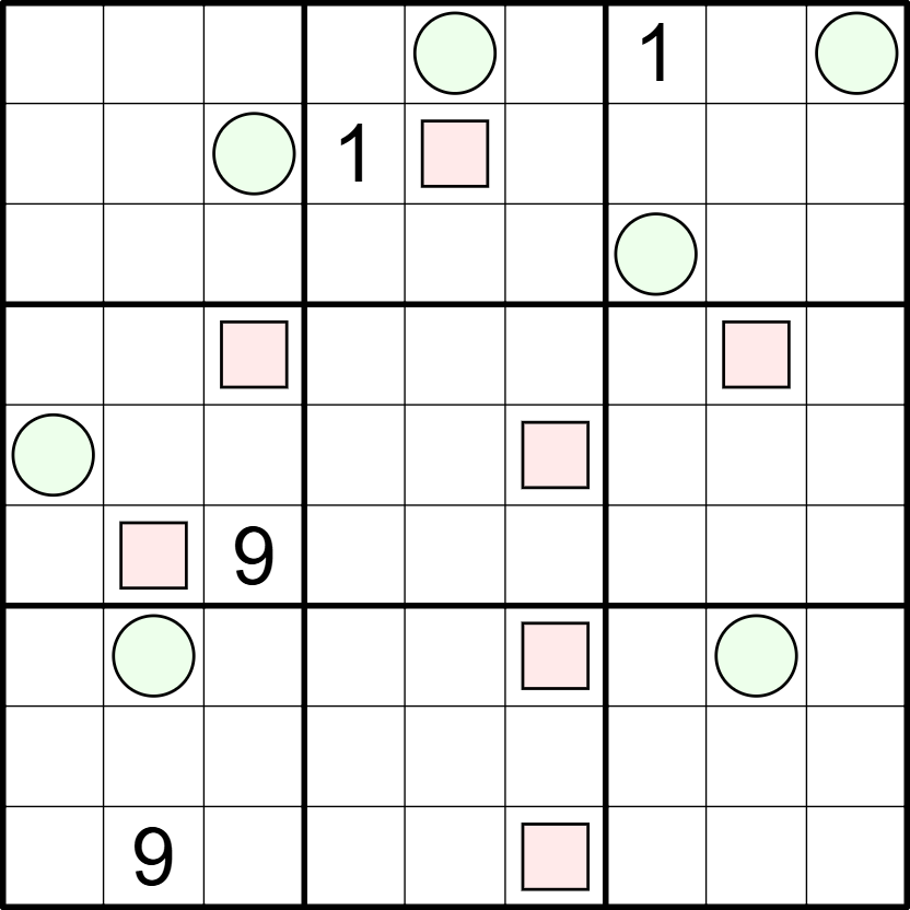 - Squares: A cell containing a square is not part of the loop and indicate how many non-loop cells it sees vertically and horizontally (including itself). Loop cells blocks vision.
