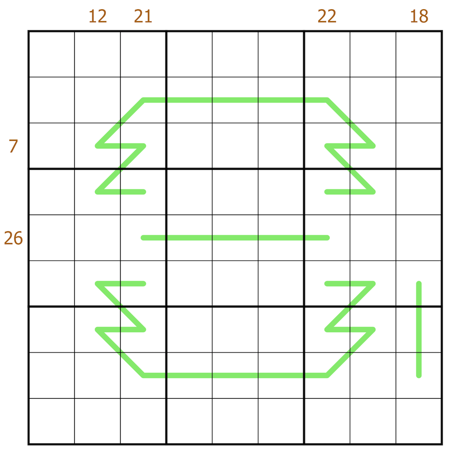 • Sandwich: The numbers outside the grid give the sum of the digits between the 1 and the 9 in that row or column.