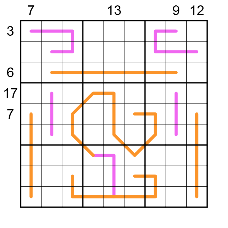 Purple (Renban) Lines: Purple lines contain a set of consecutive non-repeating digits in any order.