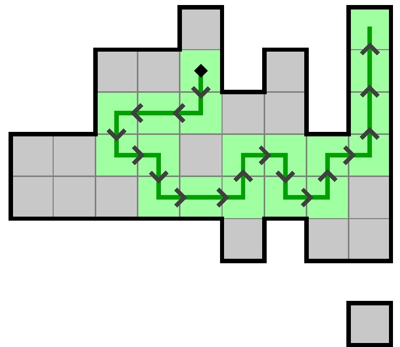 2. Every time the path enters a cell, an obstacle is placed in the first available cell in the opposite direction. This cell may skip over gaps in the grid, other obstacles, or cells that were previously visited by the path.